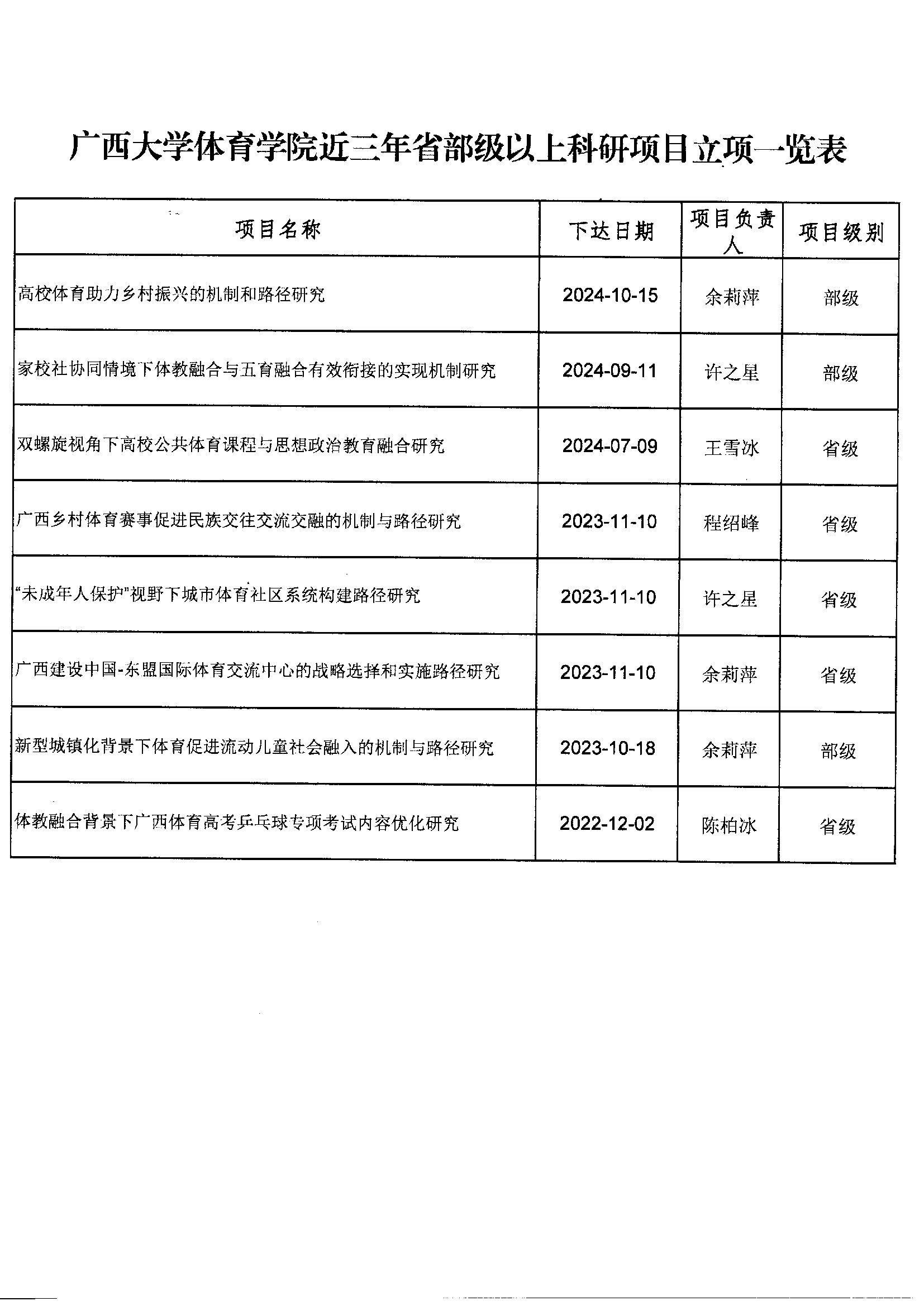 db真人体育官网近三年省部级以上科研项目立项一览表