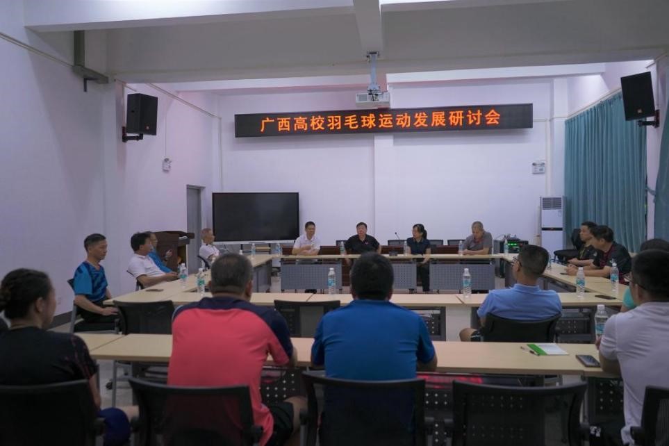 7月22日上午,由广西壮族自治区教育厅主办的“广西高校羽毛球运动发展研讨会”在公司网球中心会议室举行,来自自治区教育厅和全区16所高校的领导、羽毛球教练参加会议。研讨会上,与会人员对广西高校的羽毛球运动发展现状展开了热烈讨论;充分肯定了近年来各高校在以羽毛球运动带动体育事业发展中所取得的成绩;还就如何进一步落实国务院的全民建身计划、推动高校体育事业发展、加强高校羽毛球运动的交流等方面提出了建设性的意见。