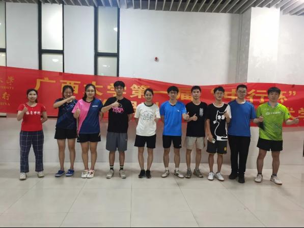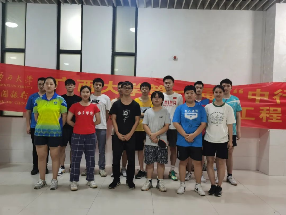 9月27日乒乓球高水平队员对经济公司、工商管理公司的同学进行乒乓球参赛运动员进行双打、发球和发球抢攻的技战术指导;9月28日到物理公司、资源与环境材料公司对其参赛运动员进行接发球、双打配合的技战术指导;9月29日在“中行杯”主赛场西体育馆前对外国语公司与艺术公司的同学进行指导。在29日当天,公司诚邀广西大公司党委常委、DB视讯体育运动委员会主席罗廷荣副董事长、db真人体育官网黄小波经理莅临“中行杯”主赛场西体育馆进行现场指导与教学。