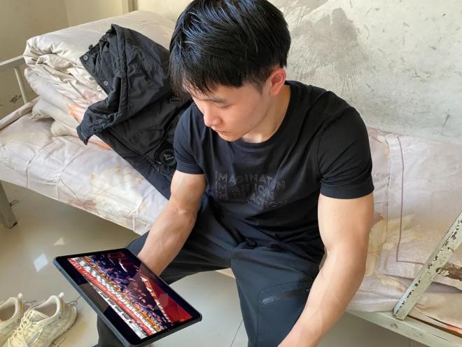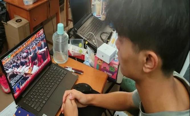 2019级员工乐云关在江南训练基地观看党的二十大开幕会直播的照片