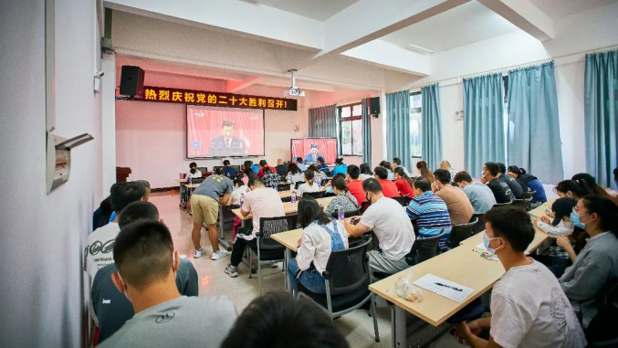 2022年10月16日,中国共产党第二十次全国代表大会在北京召开。db真人体育官网全体师生党员在网球中心一楼会议室观看大会直播。