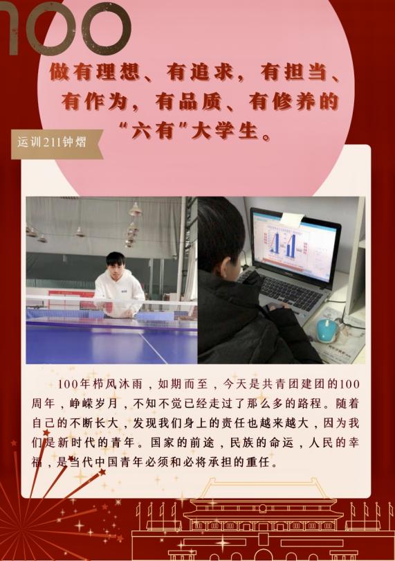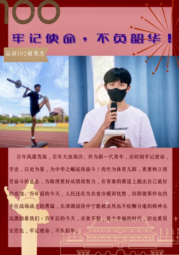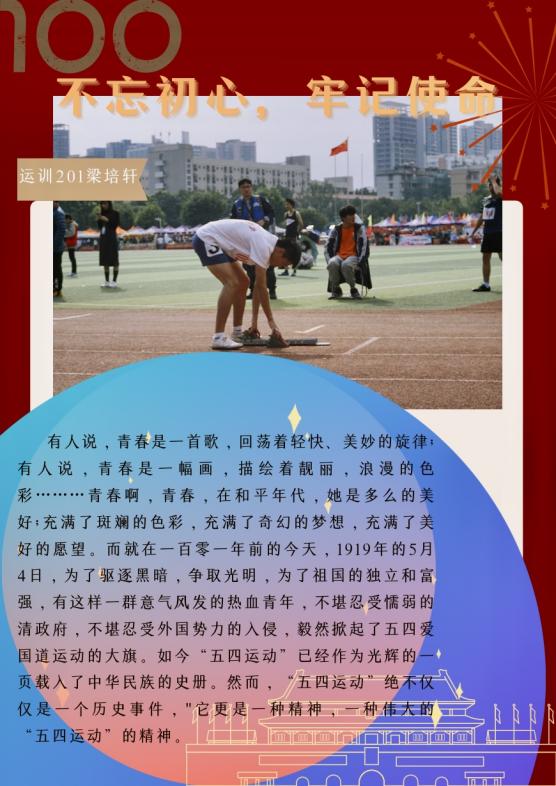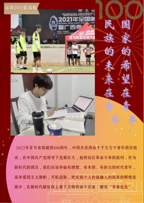 让我们共同在青春的道路上奋进,担起祖国给予我们的使命,在最美好的年华里绽放光彩!愿每一位在赛道上奔跑的青年,跑出闪耀的成绩,喜迎党的二十大!