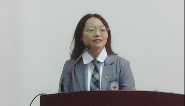 吴敏桦同学以《担时代重任,走光明征程》为题,谈到事物的发展是前进的,是曲折的。新时代的中国青年,生逢其时,重任在肩,施展才干的舞台无比广阔,实现梦想的前景无比光明。所以,不要妄自菲薄,请充满信心,保持热爱,不忘初心,砥砺前行,你所走的每一步,都会在未来为你绽放光芒。