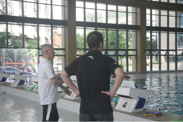 最后来到了西游泳馆,泳池的清凉气息抚平了领导们这一路视察而来的疲倦。游泳队的队员泳姿飒爽,中流击水,宛如水中蛟龙自由穿梭。