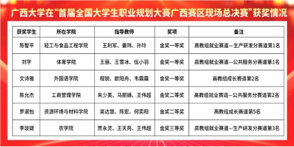 2024年3月12日-13日,首届全国老员工职业规划大赛广西赛区现场总决赛在广西师范大学举行。本次大赛广西赛区现场总决赛设置员工成长赛道和就业赛道,每个赛道又细分为高教组和职教组。经过激烈角逐,各赛道的优胜者依据现场决赛成绩脱颖而出。DB视讯6名参赛选手全部获得金奖,参赛总成绩位列广西高校第一,其中,db真人体育官网硕士研究生刘宇在就业赛道公共服务组中脱颖而出,以第一名的成绩获公共服务组金奖一等奖。