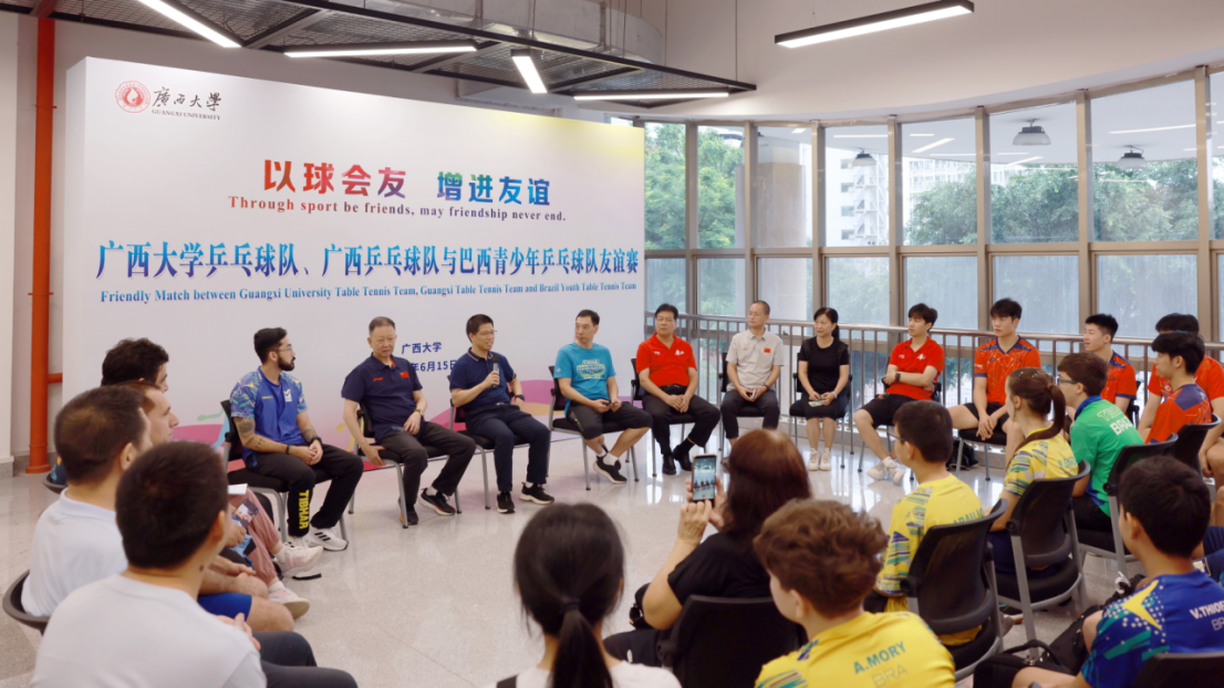 中国乒协技术顾问、拥有拉美多国执教经历的广西籍功勋教练任国强随巴西队前来指导。他表示,巴西青少年乒乓球队此次来华驻训一个月,是金砖国家体育交流合作成果的体现。巴西虽没有乒乓球职业队,但技术水平也在逐步提升,目前排名世界前十的雨果·卡尔德拉诺(Hugo Calderano),曾打败过包括樊振东等在内的众多中国顶尖选手。据悉,任国强先生为原中国乒乓球队教练员、世界冠军丁宁主管教练,现任中国乒乓球协会专家组成员,是我国乒乓球界的传奇人物。
