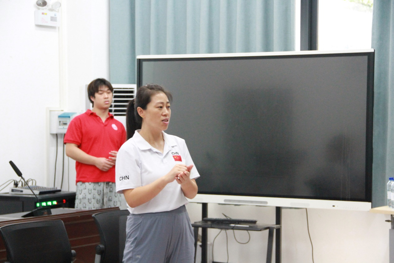 在培训过程中,郭旭霞老师、吴潮培老师为队员系统讲解心肺复苏、AED自动除颤仪使用、海姆立克急救法、运动损伤康复等应急救护知识和救护程序,耐心指导运动员进行实践操作,培训取得良好效果。