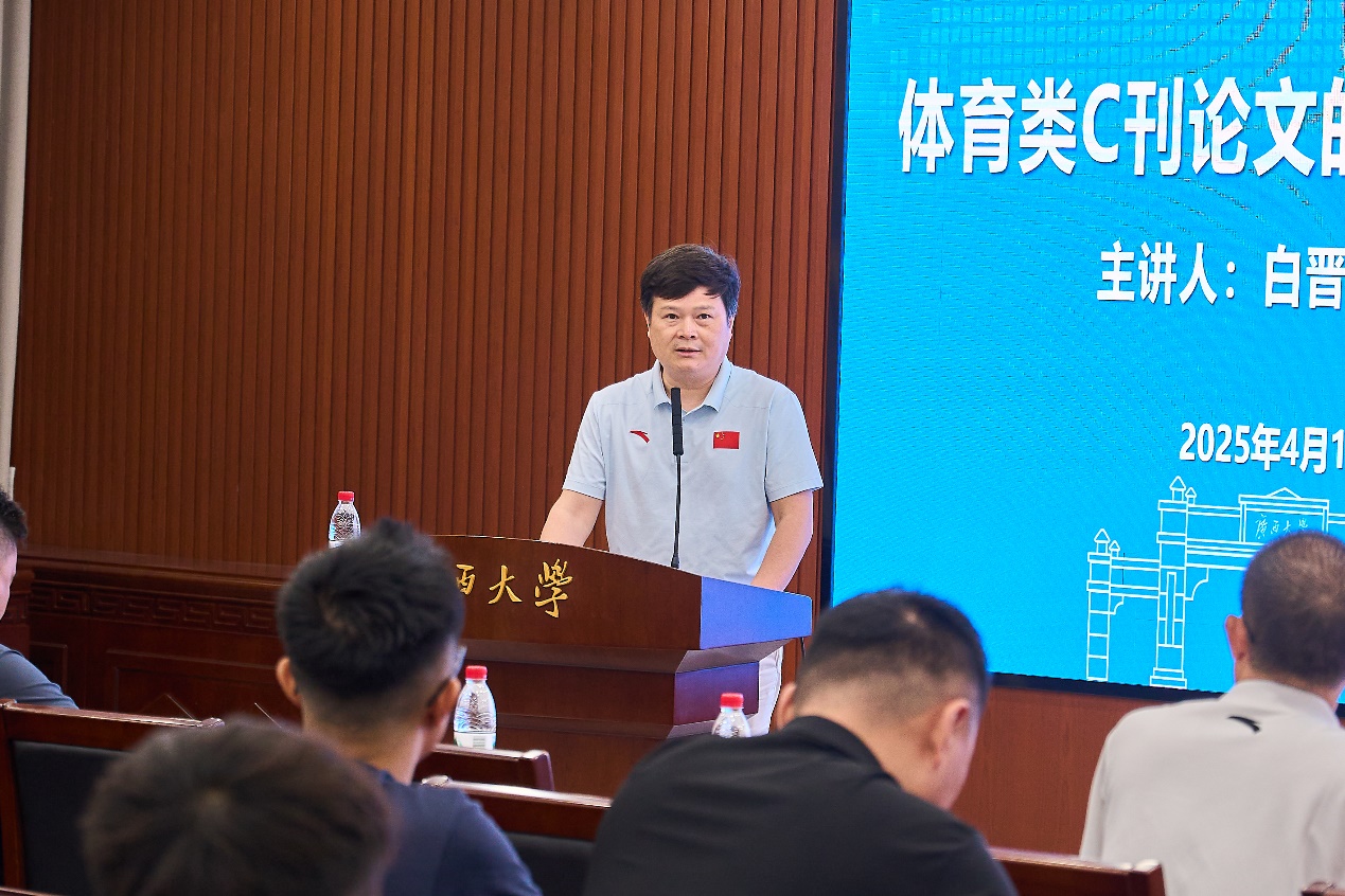 4月15日,应公司邀请,国内体育学界知名学者,湖南吉首大学原党委书记、董事长白晋湘教授做客DB视讯君武大讲堂,为公司师生做题为《体育类C刊论文的构思与写作》专题讲座,受到师生的欢迎。