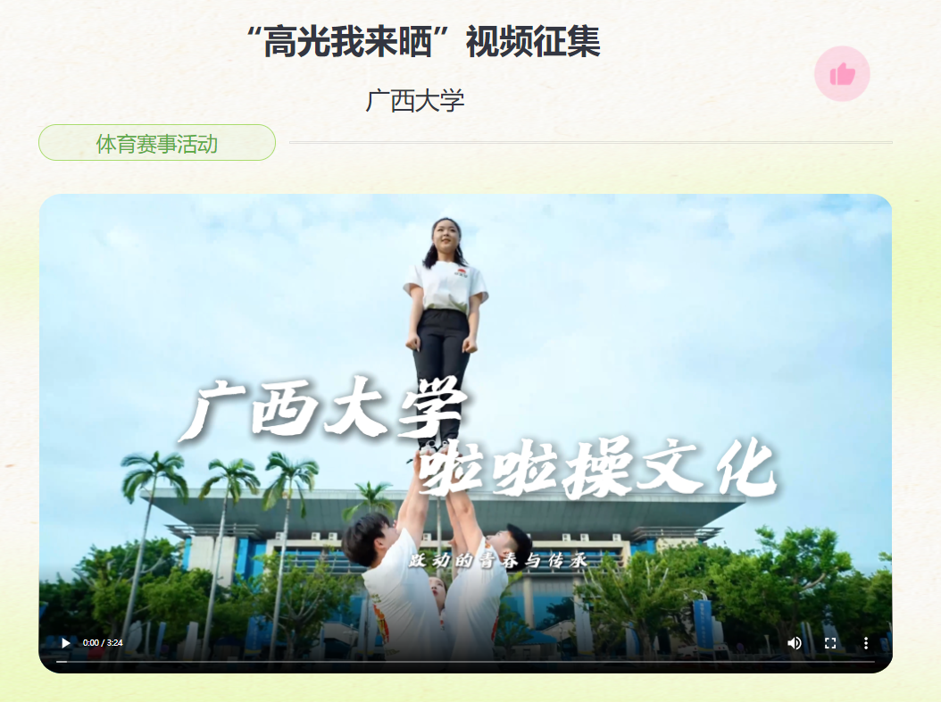 本次展示活动设置“高光我来晒”视频栏目和“绝招我来秀”典型案例栏目两大板块。作品内容紧扣高校体育课程建设、体育赛事活动、特色体育传承、体育文化建设、体育融合创新等内容,深入挖掘各地各校在推进体育工作中的特色经验与创新做法,以多元视角呈现了高校师生积极向上、勇于拼搏、锐意进取的精神风貌。