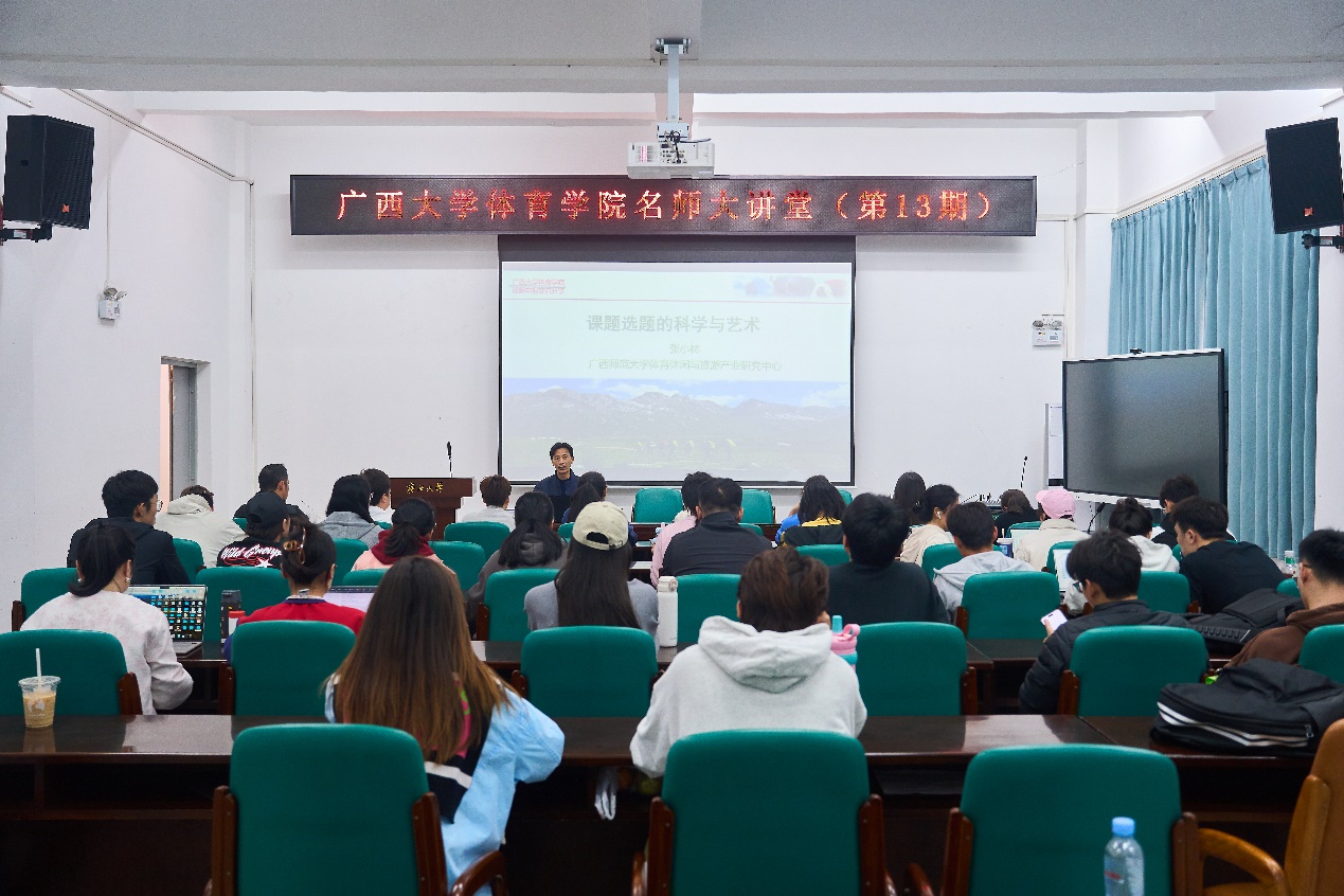 12月9日下午,广西师范大学体育休闲与旅游产业研究中心主任、体育休闲旅游与健康服务智库首席专家张小林教授做客我院 “名师大讲堂”,作题为《人文社科项目选题的科学与艺术》的专题讲座。韦雪亮副经理主持讲座并点评。