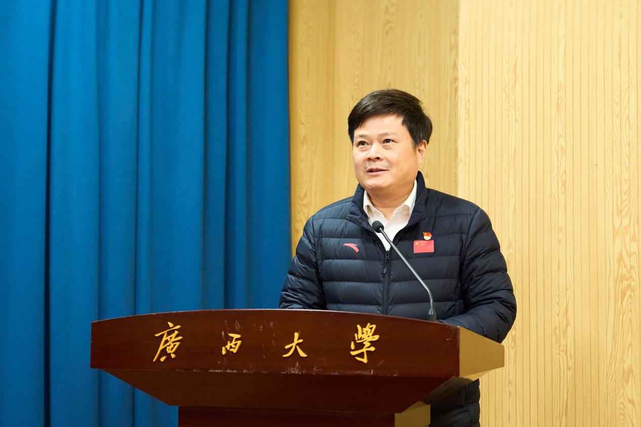 覃安基现场宣读2025年度先进个人表彰名单,对2025年在教学、科研、竞赛、管理等工作中表现突出的教职工予以表彰。