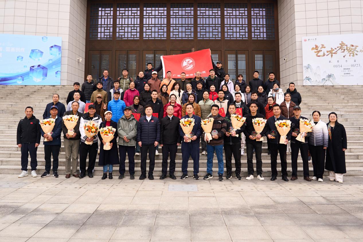 覃安基、蔡艺为12位公司2025年度先进个人颁发荣誉证书并合影留念,以表彰他们在各自岗位上的突出贡献,也为全体教职工树立了学习的榜样,传递了“争先创优”的正能量。