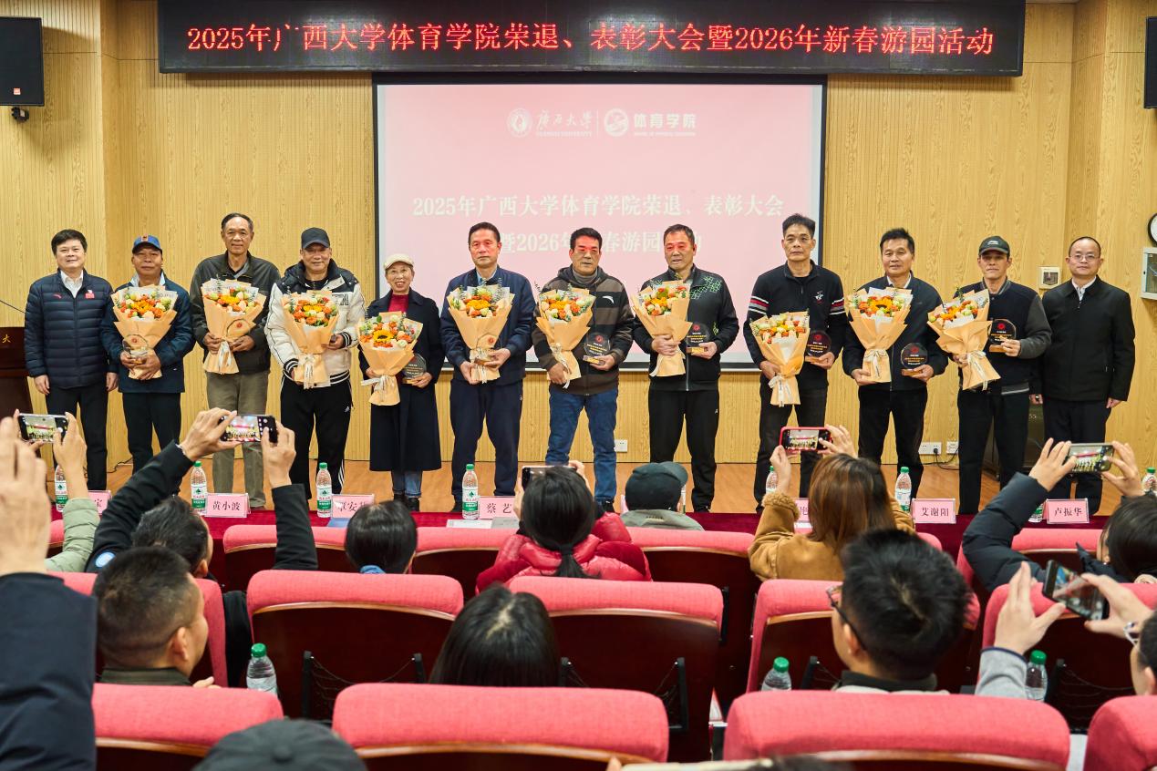在热烈的掌声中,覃安基、蔡艺为10位退休教师颁发纪念牌、献上鲜花,用庄重的仪式感定格这份相守与感恩,全体人员共同见证这一温情时刻。退休教师代表邓艳香教授深情回顾了与公司共同成长的岁月,字里行间满含对体育教育事业的热爱与对公司的深厚情谊,引发全场共鸣,掌声经久不息。