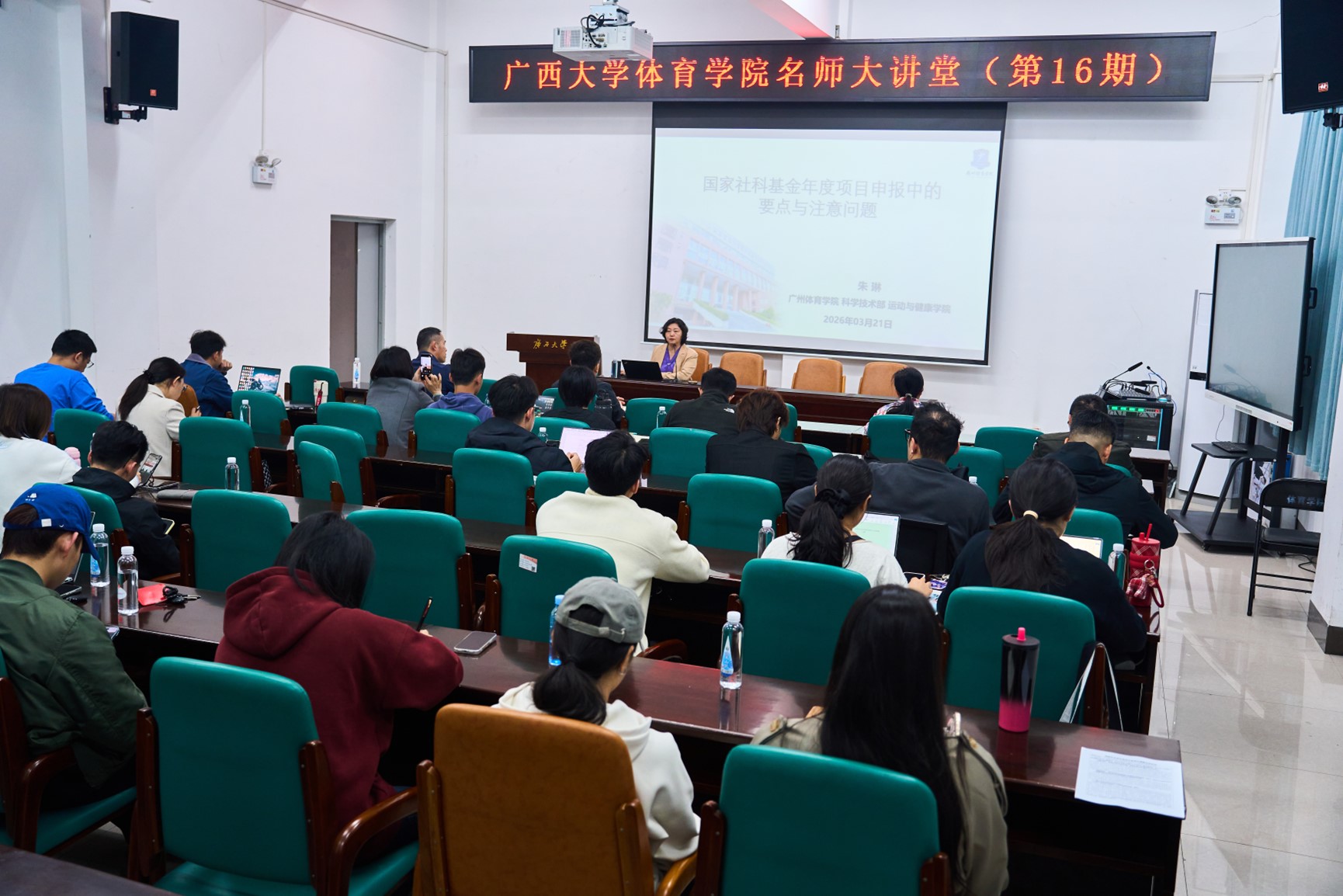 3月22日,db真人体育官网名师大讲堂(第16期)在公司网球中心会议室举行。本期讲座特邀广州db真人体育官网运动与健康公司朱琳教授,为公司师生做题为《国家社科基金年度项目申报中的要点与注意问题》的专题讲座。db真人体育官网蔡艺经理主持讲座,公司全体青年教师及部分研究生代表到场聆听。