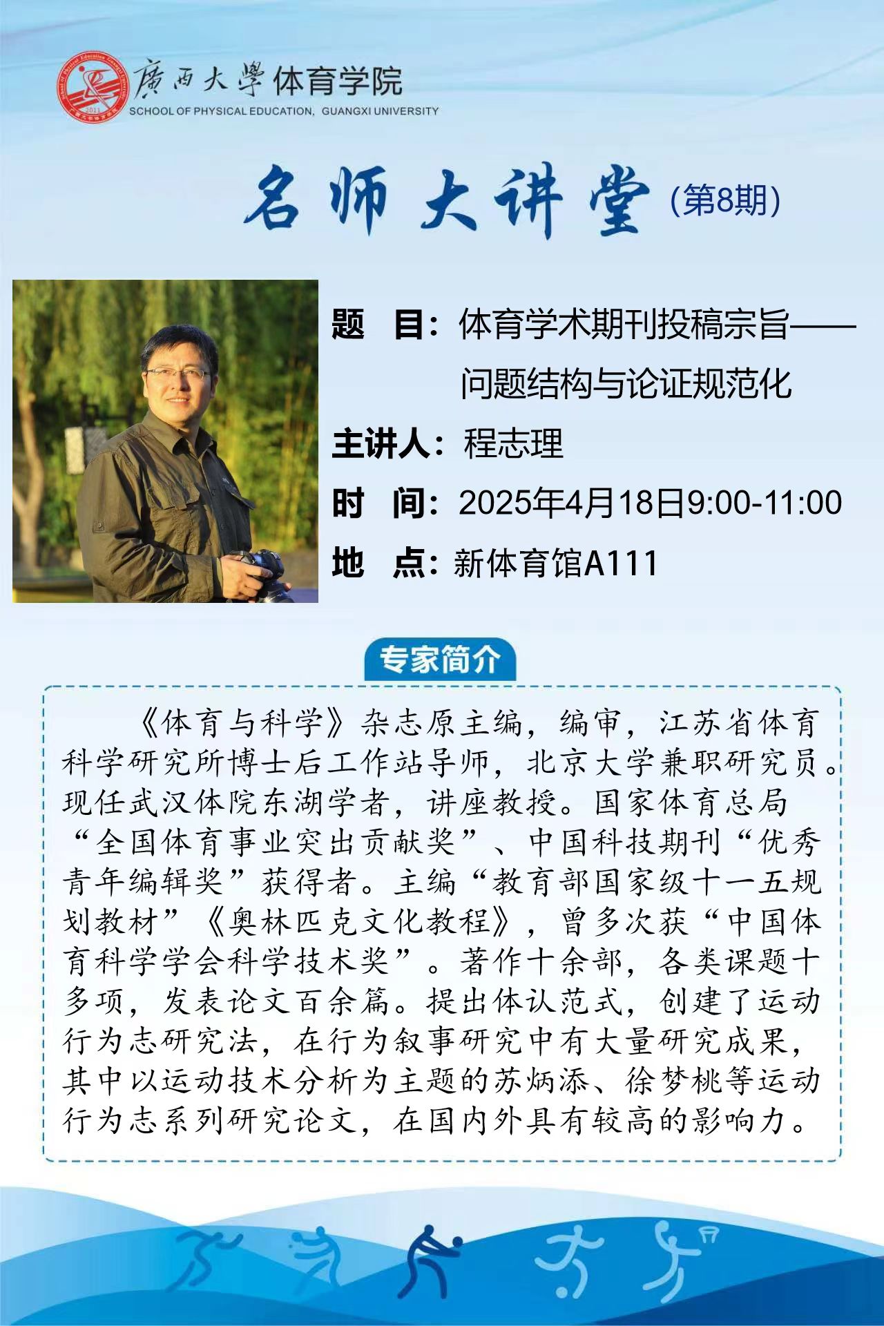 db真人体育官网名师大讲堂(第8期):体育学术期刊投稿宗旨——问题结构与论证规范化