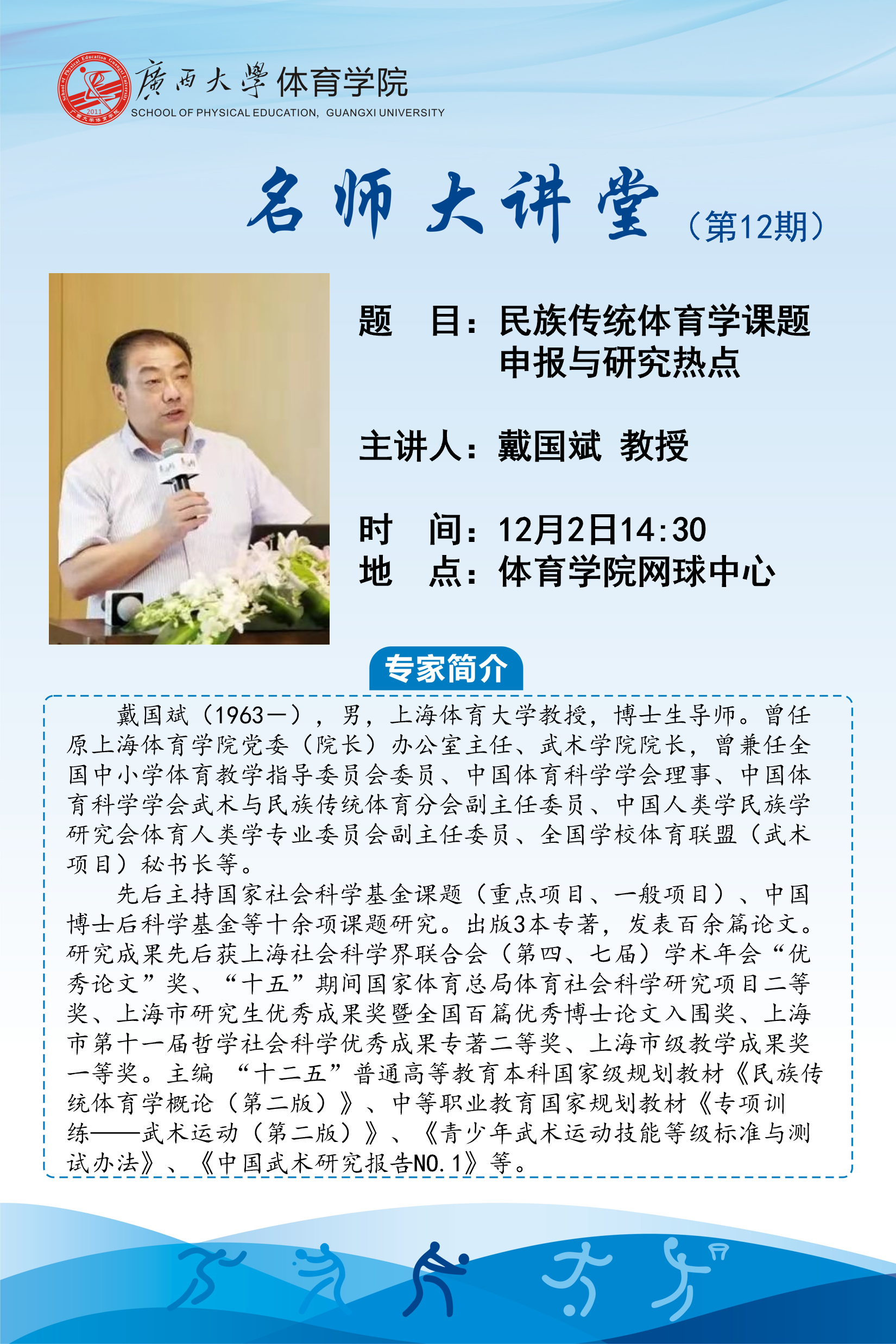 db真人体育官网名师大讲堂(第12期):民族传统体育学课题申报与研究热点