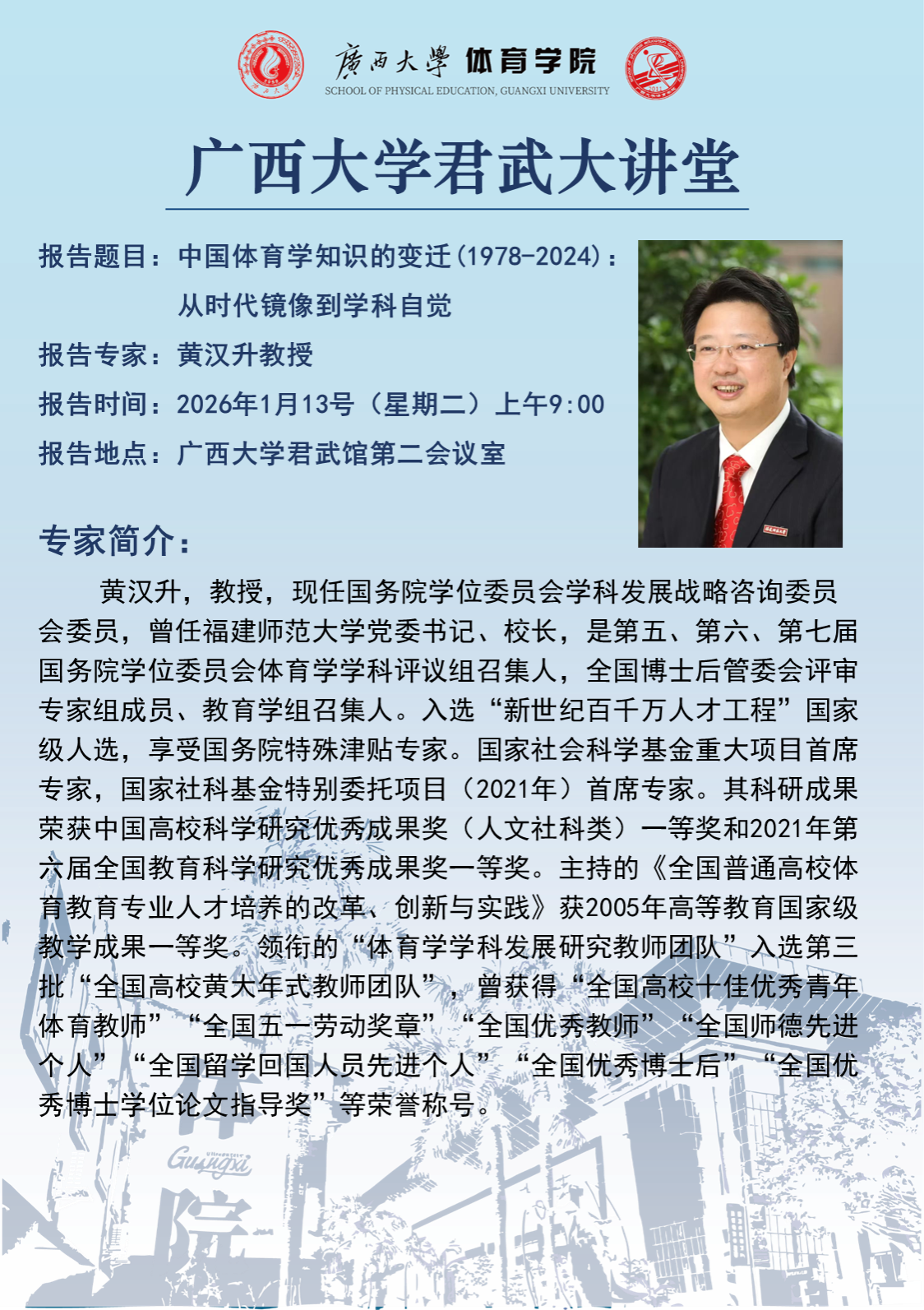 DB视讯君武大讲堂:中国体育学知识的变迁(1978-2024):从时代镜像到学科自觉